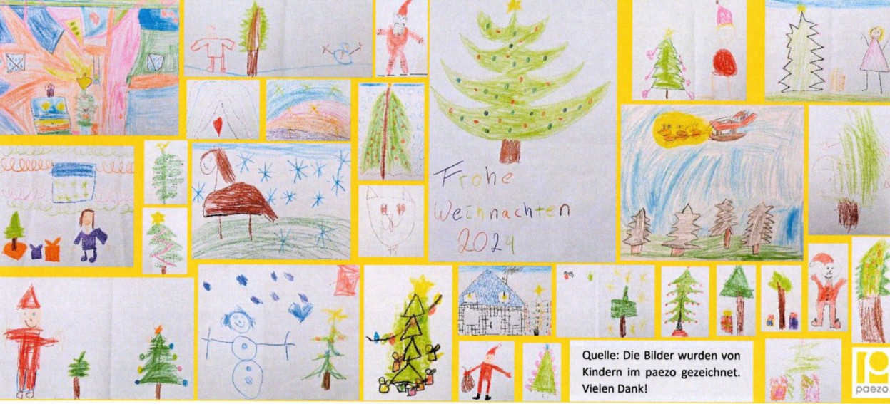 Jedes Jahr zu Weihnachten lassen wir unsere kleinen "Künstler", wenn sie möchten, ein Kinderbild malen. Die Kinder sind hier komplett auf sich gestellt.